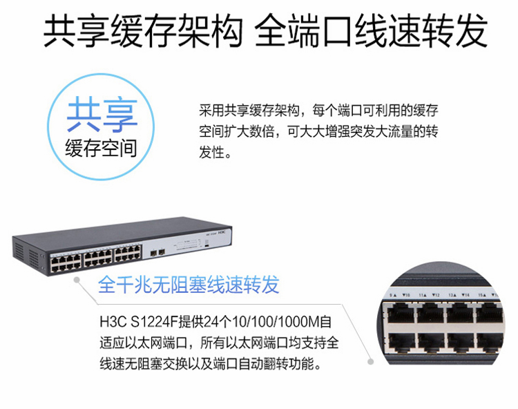 华三(H3C)-交换机-S1224F 24口全千兆 二层非网管交换机