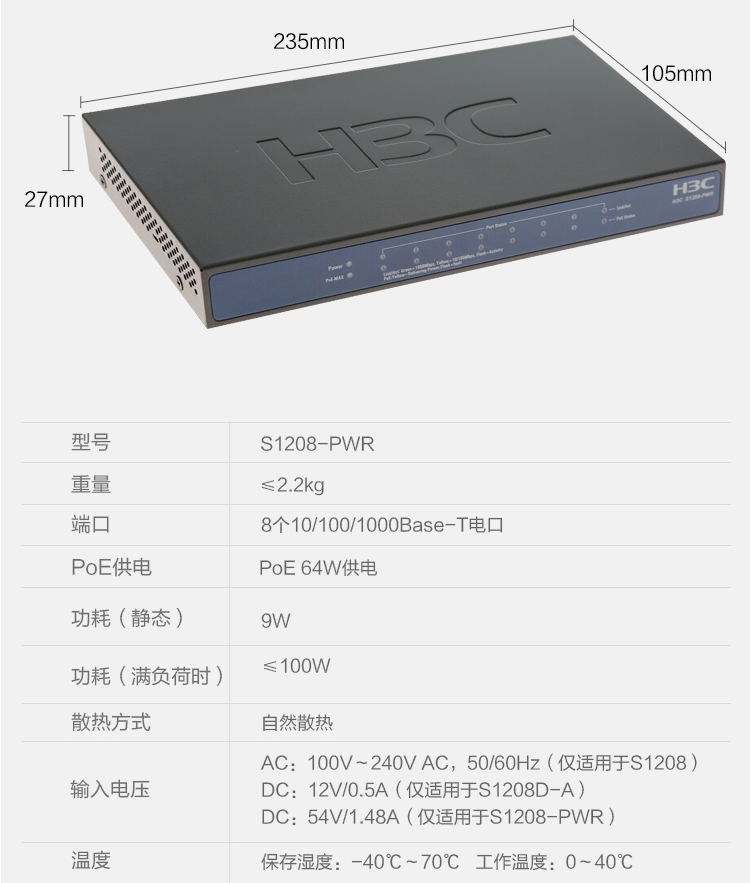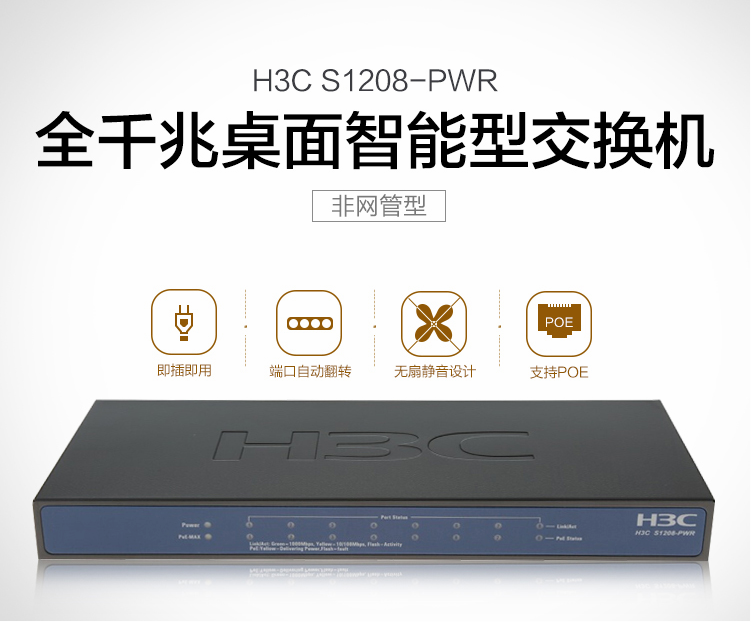 华三(H3C)-交换机-S1208-PWR 8口千兆 二层非网管企业级交换机
