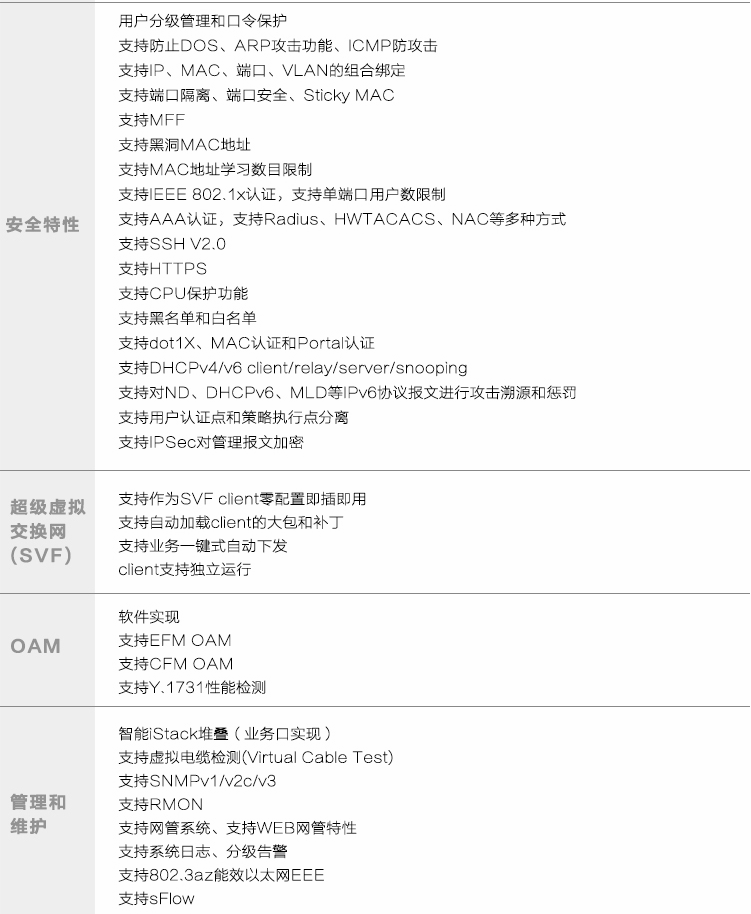 • 端口类型 48个10/100/1000Base-T: 4个千兆SFP