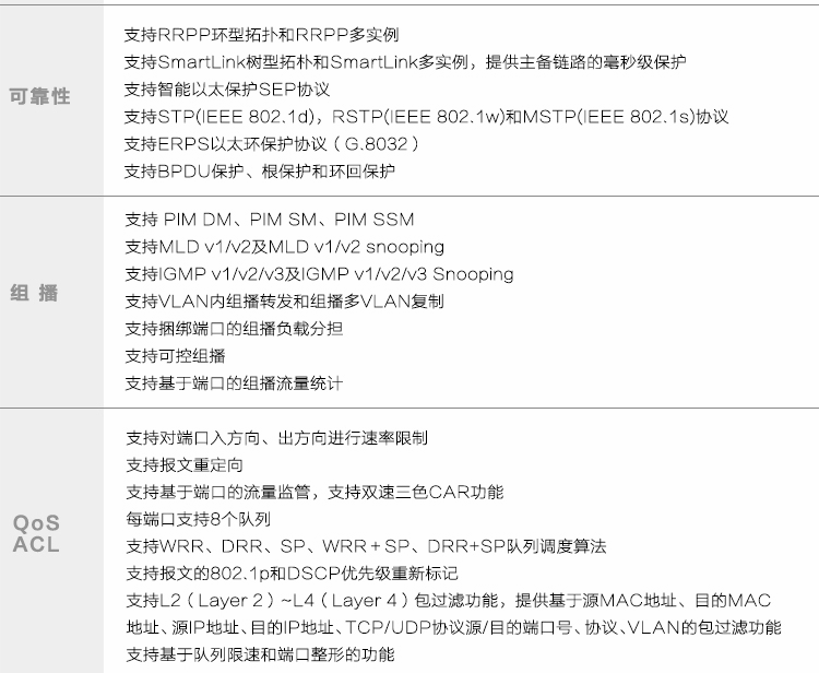 • 组播协议: 支持