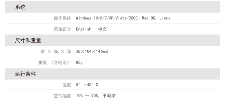 机身尺寸:38*104*14(mm)