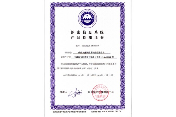 产品类型 | 通过以太网信号传导辐射方式进行信息截获的网络安全防护产品。通过CPU控制CPLD产生1MHz-1.5GHz的宽频随机相关加扰信号。设备采用频分复用技术,在不影响原有通信的情况下,防止网络线路传导辐射,达到对网络传输的重要数据实施保护的目的。 |
