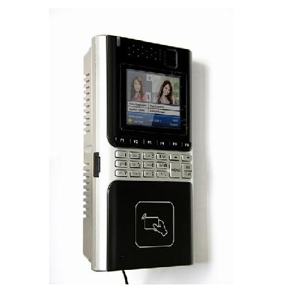 其它特性 | 3.5英寸真彩TFT液晶屏、分辨率:320*240; 130万像素高清彩色摄像,U盘存储记录;集成CPU卡读卡器;内置单门门禁控制器,双继电器输出;可控制终端机发布消息;语音提示、生日提醒、整点报时 多媒体功能广告页面 |