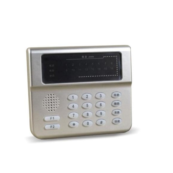 其它特性 | 中文液晶显示,显示控制设备的各种信息,包括报警、状态、编程等.1个布防指示灯,显示该键盘是否在布防状态,1个状态指示灯,显示该键盘是否在编程状态和欠压状态.支持2个自学码遥控器,支持"布防"、“撤防”、“留守布防”. |