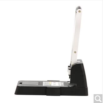 产品性能介绍: 1.打孔能力:≤15mm。 2.孔径:φ6mm , 孔距:80mm , 纸边到孔中心距离为12mm。 3.采用全新的冲头结构(空心刀)从而达到省力效果。 4.采用全新的换刀机构,从而使换刀更为简便。 5.对称式标尺设计从而使纸张左右定位更为方便;标尺采用压缩式设计,当压下时,可以增大放置表面。 6.带储物箱设计,节省部品摆放空间。