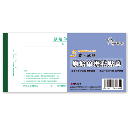 弓箭手(Arcarius)-凭证-原始单据粘贴单 会计记账凭证打印纸 50张/本(220*105mm)5本装 ks-08840