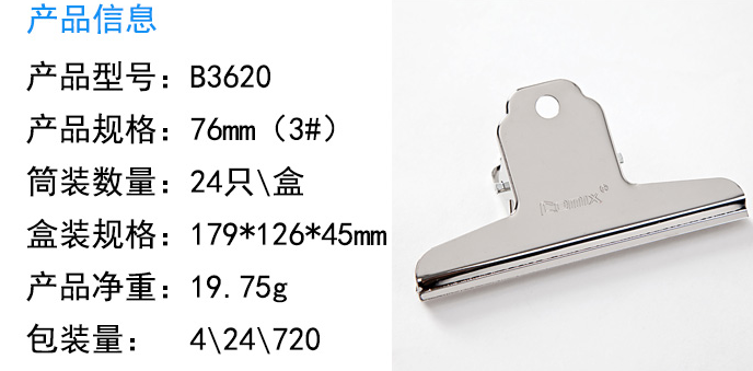 齐心(Comix)-票夹-4只76mm不锈钢票夹3#110页B3620