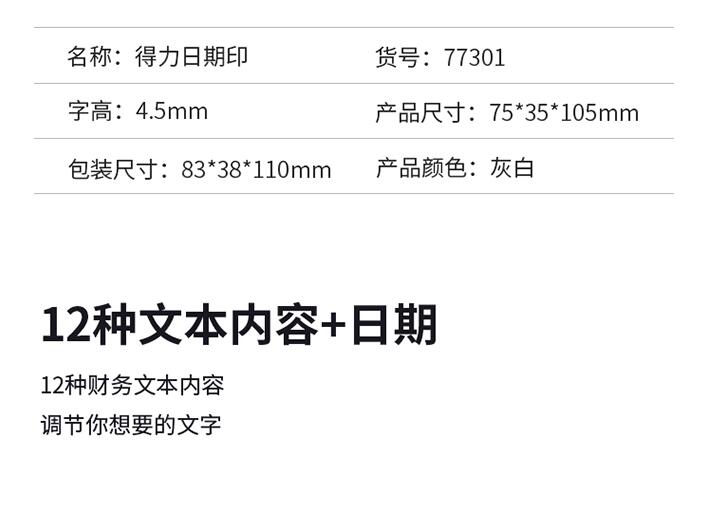 得力(deli)-号码机-财务常用款文本+日期印章 77301