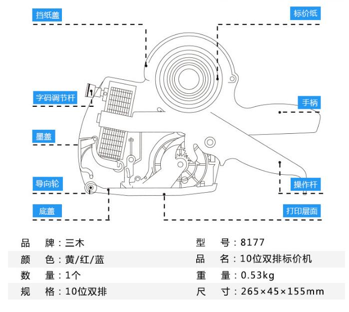 • 型号: 8177 10位双排标价机/打码机/打价机 黄色