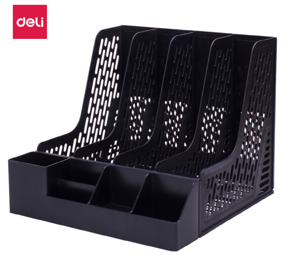 得力(deli)-文件栏--加厚带笔筒 四联文件框文件筐 耐用文件栏文件架 黑78981