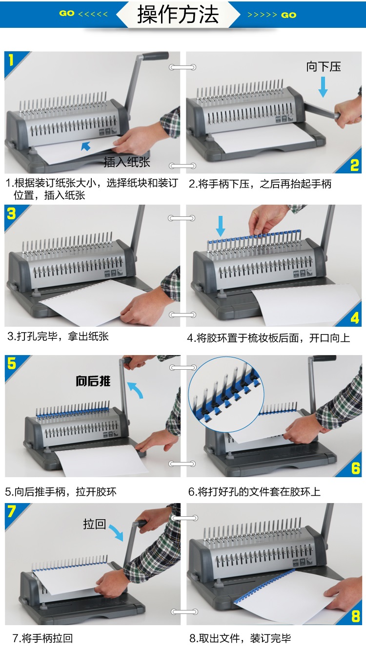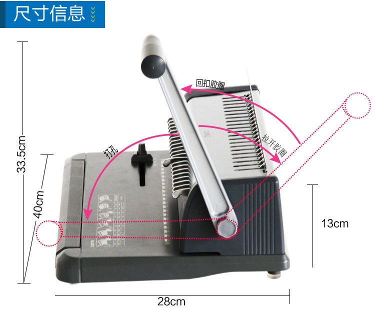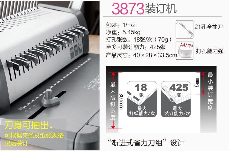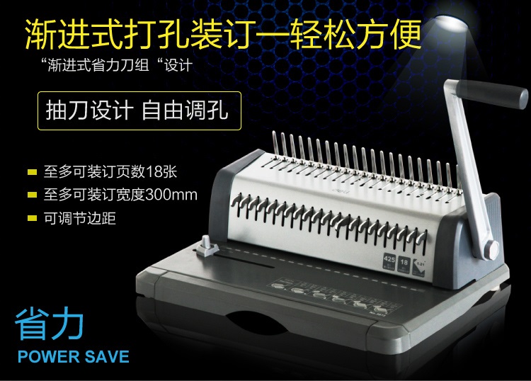 2.最大装订厚度:25mm圆胶圈/50mm椭圆胶圈;